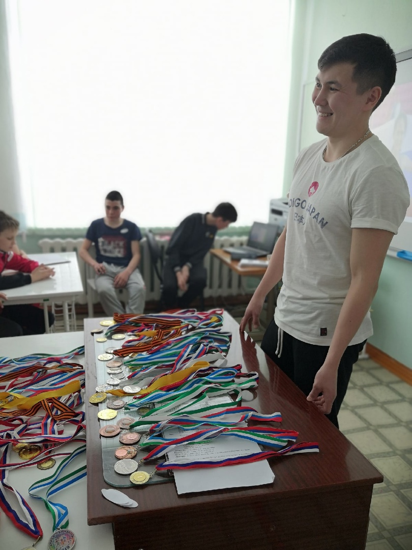 Исмагилов Марсель Рифович рассказал ученикам о своих достижениях в спорте, показал свои медали. Спорт – это то, что приносит радость и удовольствие. Занятия спортом помогают в повседневной жизни. Спорт учит работать в команде и быть целеустремленным. Занимаясь спортом приобретаешь новых друзей